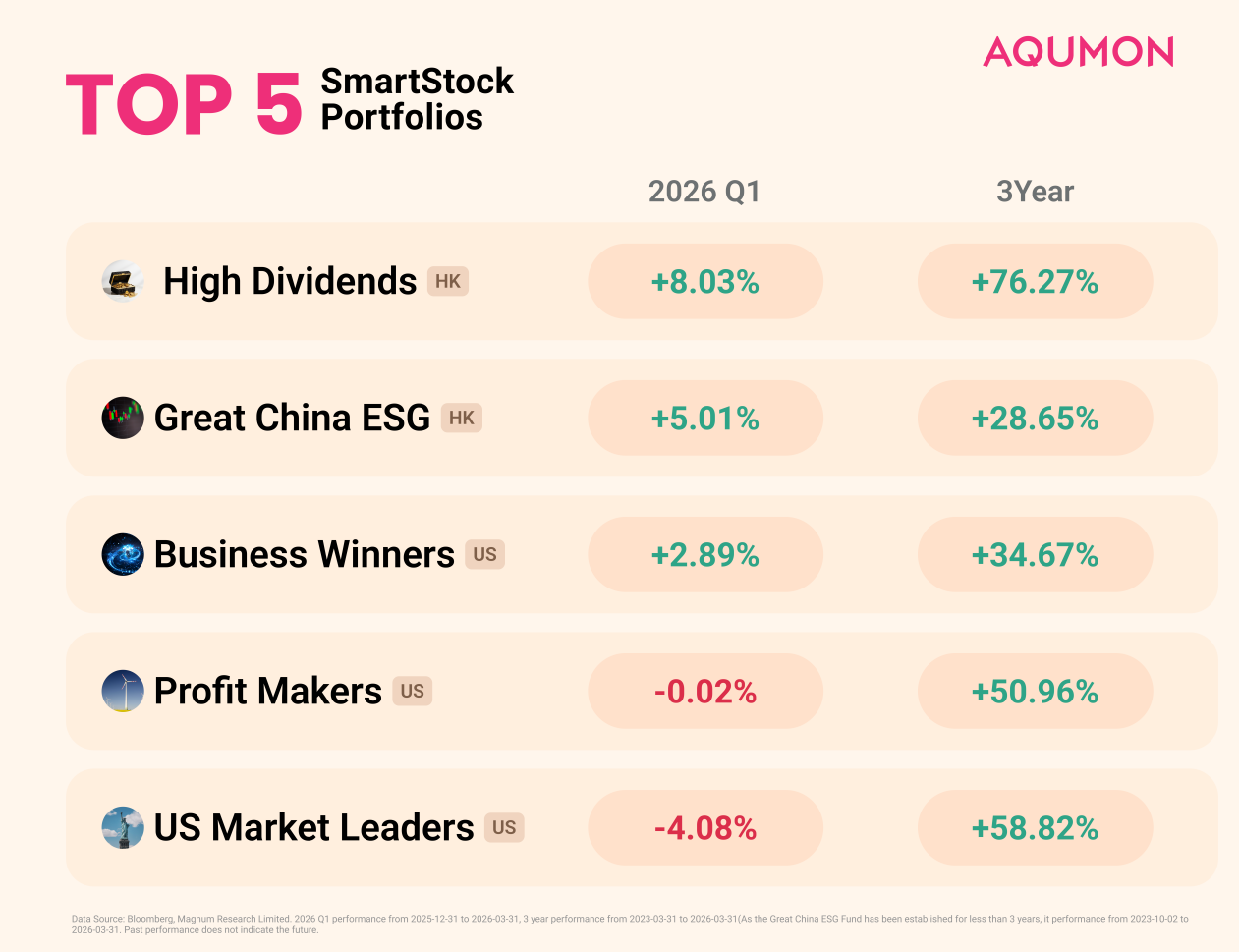 In an environment where global markets broadly declined in Q1, AQUMON’s thematic investment portfolios successfully captured scarce structural opportunities and achieved contrarian growth. This was made possible through precise sector selection, strict risk control on underlying assets, and in-depth fundamental research, fully validating their ability to generate alpha and mitigate risks.