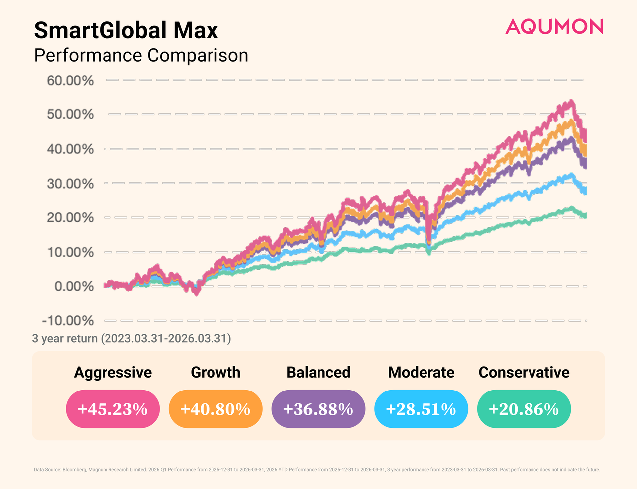 In Q1 2026, the risk mitigation capabilities of the SmartGlobal Max series were even more pronounced. The cumulative returns for the quarter were as follows: